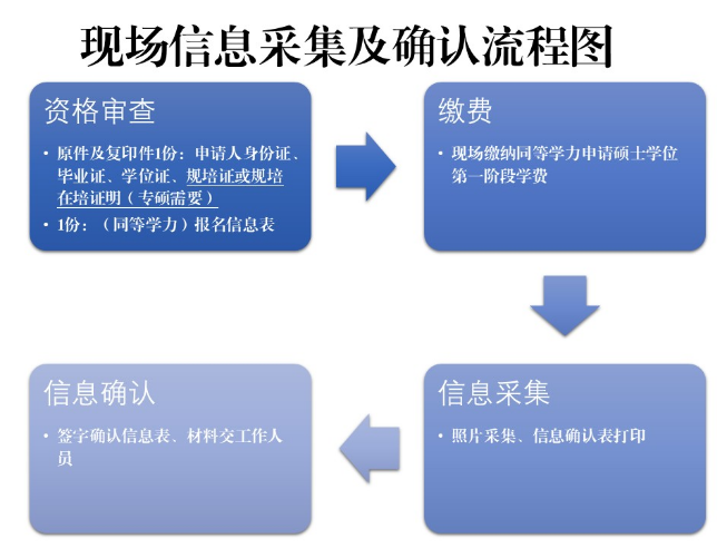 已提交网上申请的人员(注意:曾经申报过其他学校同等学力人员且未办理好网上清退的人员现场不能确认!)