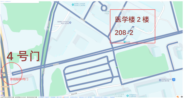 昆明理工大学景明南路727号呈贡校区;西北A教学楼(医学楼)二楼 208-2室。