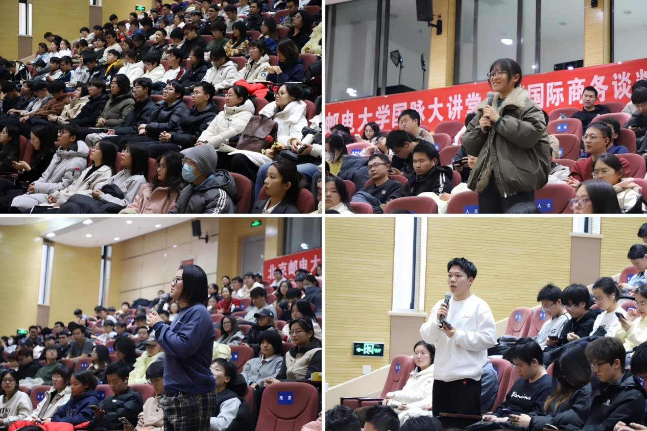 在互动交流环节,蔺芳忠就同学们关心的问题进行了耐心细致地解答,鼓励北邮学子保持开放视野和学习热情,不断夯实专业基础,提升综合能力。他指出,谈判不仅是技巧和方法的运用,更体现价值判断与责任意识,强调在实践中应坚持底线原则,树立正确的价值观。