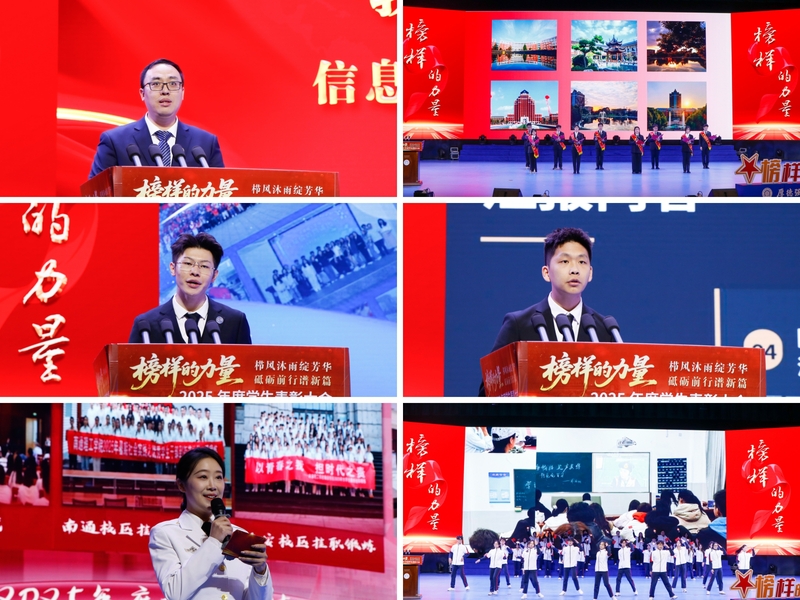 12月26日下午,我校在海安校区大礼堂召开2025年度“榜样的力量”学生表彰大会。校长程纯、党委书记江应中等校领导出席大会。大会由副校长赵怀斋主持。南通校区设分会场,线上同步直播。