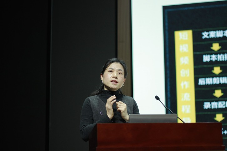 招生办公室主任谢丞、文学与传媒学院教师潘亚莎随后向与会师生做标准化PPT宣讲、照片及视频拍摄等宣传业务培训。会后18个学院分别组织所有参与学生在分会场观看培训视频,全面夯实活动筹备工作。