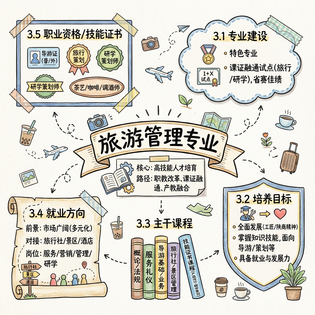 旅游管理专业以培育契合现代旅游行业需求的高技能人才为核心,深度融入国家职业教育改革理念,通过“课证融通”将1+X职业技能证书培训内容嵌入课程体系,借助先进实训室与丰富数字化资源开展项目化教学,并深化产教融合、校企协同育人,全面提升学生综合素质与职业素养。