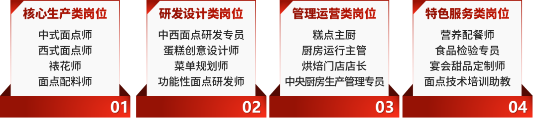 就业方向:主要面向大中型餐饮企业、星级饭店的餐饮部门及厨房;各类企事业单位的后勤餐饮、服务等相关部门;同时也可就职于独立的中式面点企业,以及烘焙店、西点工坊等西式面点相关企业。