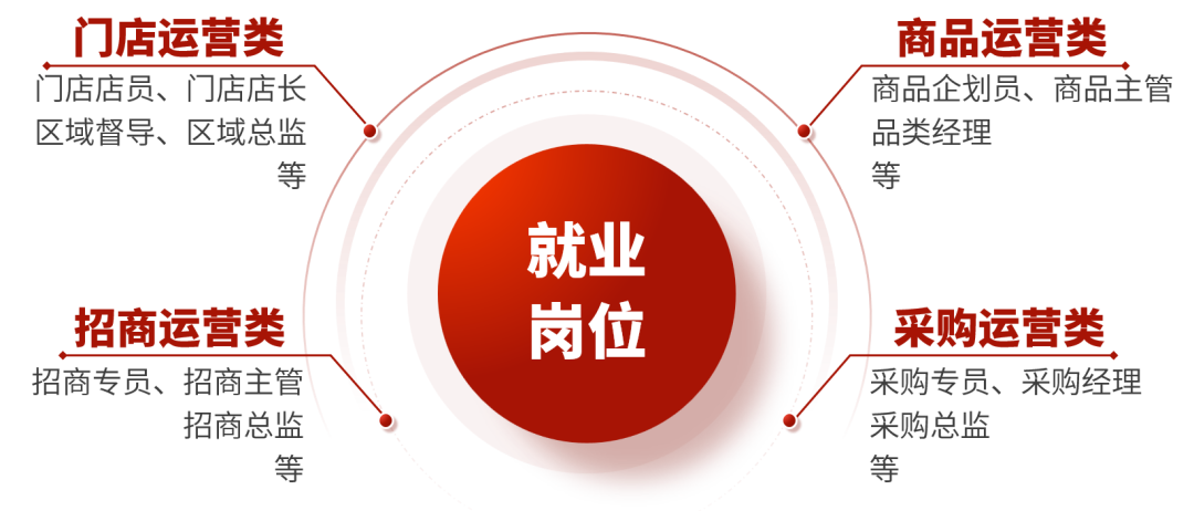 本专业服务于连锁零售、餐饮、生活服务、商务服务等开展连锁经营的行业业态,面向连锁企业总部与门店经营等相关岗位群,培养德智体美劳全面发展,熟悉连锁企业业务流程,掌握连锁经营专业知识和技术技能,从事门店管理、商品管理、招商管理、信息化管理等连锁经营与管理工作的高技能人才。