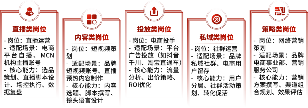 新媒体运营技能课程:《产品拍摄与视频剪辑》《新媒体运营与推广》《品牌策划与推广》《直播营销实训》