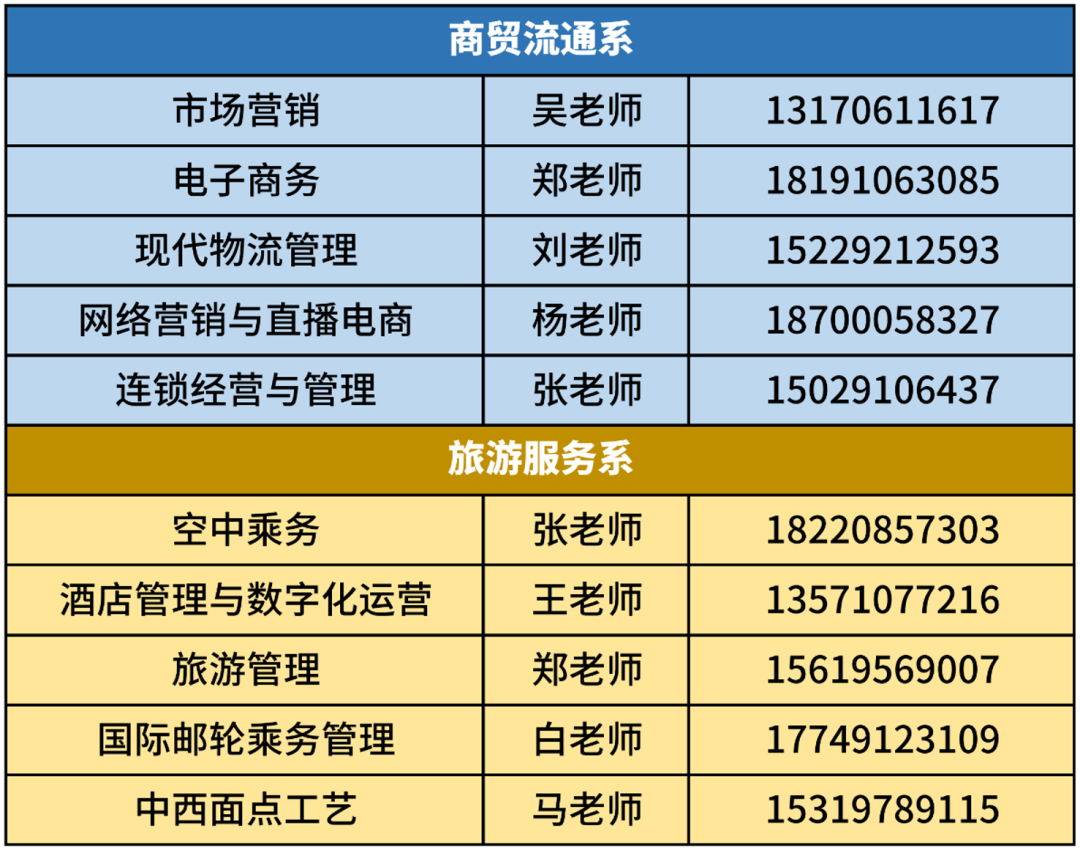 学院下设商贸流通系与旅游服务系,共开设10个特色专业:商贸流通系以“数智商务”为方向,涵盖市场营销、电子商务、现代物流管理、网络营销与直播电商、连锁经营与管理等专业;旅游服务系聚焦“智慧文旅”,开设空中乘务、酒店管理与数字化运营、旅游管理、国际邮轮乘务管理、中西面点工艺等专业。