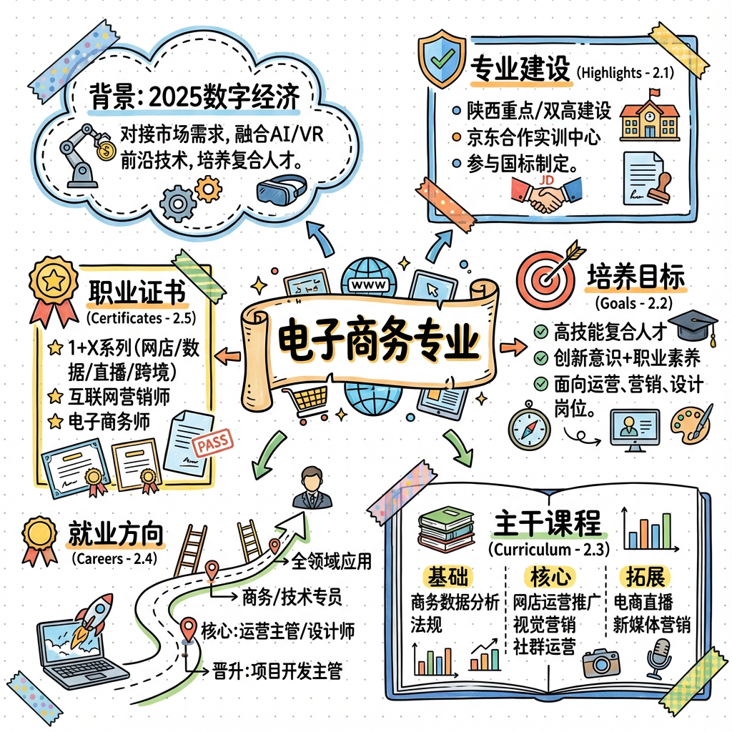 《2025年数字经济发展工作要点》明确提出优化数字经济领域学科设置与人才培养模式,鼓励电商企业深度运用AI大模型、VR/AR、区块链等前沿技术优化运营体系。电子商务专业不仅精准对接市场对复合型电商人才的迫切需求,更对营销、物流、商务数据分析等专业形成强大辐射与带动效应,为地方经济高质量发展提供坚实的人才支撑与智力保障。