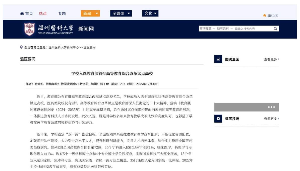 对于 2026 年备战高考的考生及家长来说,温州医科大学此次入选首批综合改革试点高校,无疑带来了更多报考红利: