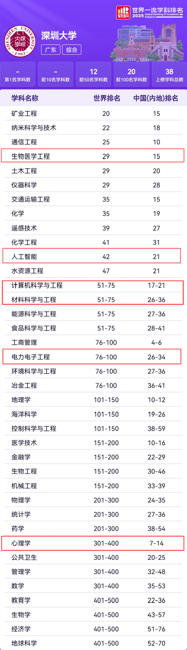 深大 世界一流学科排名