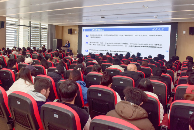 招生与就业处、校团委负责人及学生志愿者代表220余人参会。招生与就业处副处长黄潇详细介绍了学校的发展概况、办学特色、学科优势、招生政策和校园文化,并对宣讲内容、沟通技巧、注意事项等方面进行辅导,要求志愿者全面准确传递学校信息,以专业态度展现西华学子的良好风貌。校团委副书记王映玥对招生宣传志愿服务进行工作部署,并对全体志愿者提出要求:一要高度重视,精心准备,全面准确地宣传学校;二要严守纪律,注意形象,展现出西华学子良好的精神风貌;三要牢固树立安全意识,确保活动顺利开展。