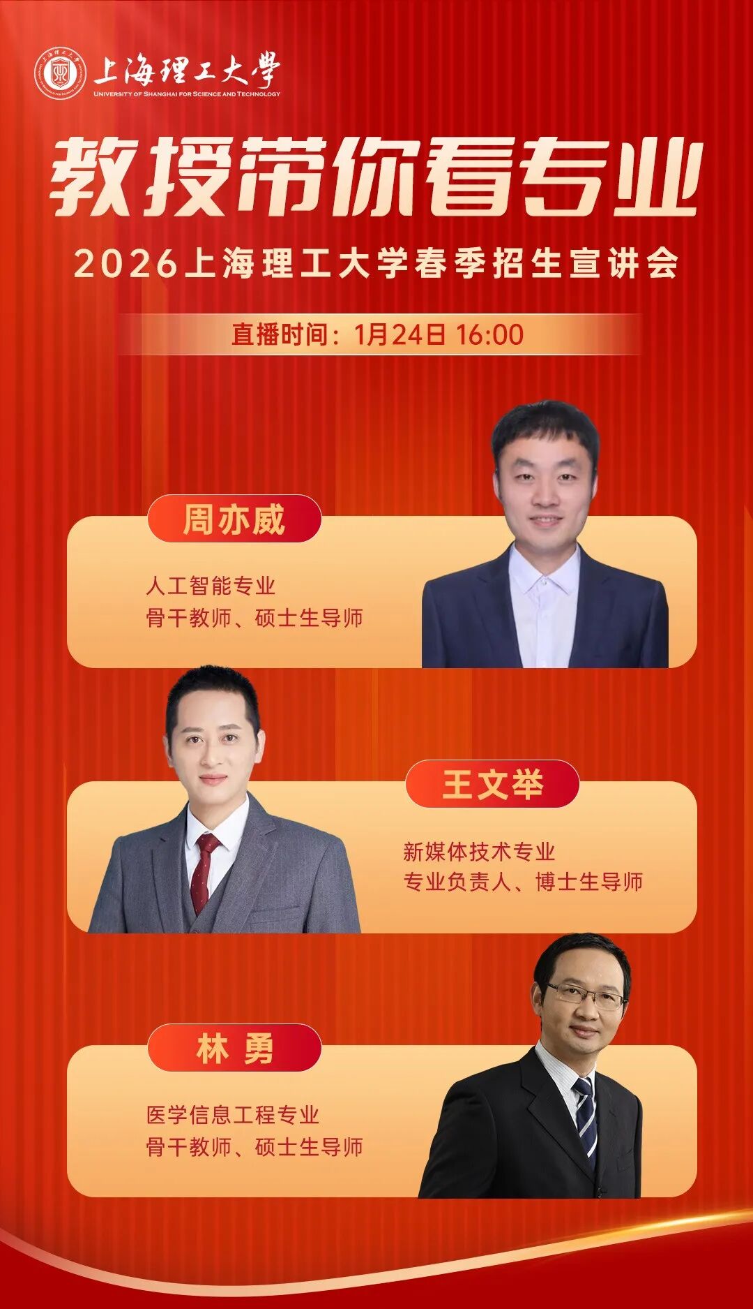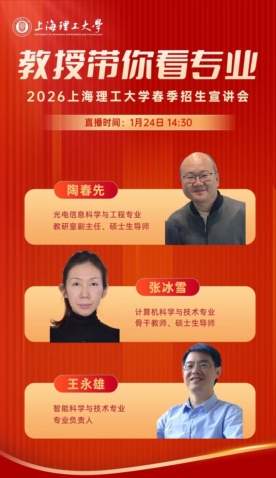 教授带你看专业 | 1月24日上海理工大学春招宣讲会不见不散!