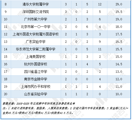 2008-2025年获丘成桐中学科学奖的国内各地区中,北京地区共有182个团队获奖,奖金总额达到246.5万元,远超其他地区。北京、上海、广东地区获奖团队数占到全国的66.1%,经济发达地区中学竞赛实力异常强大。
