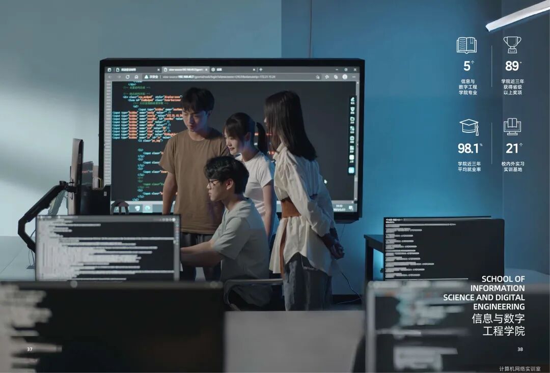 信息与数字工程学院下设数智技术、计算机应用技术两个系部。省级、校级特色和优势专业5个,校内外实习实训基地21个,各类教学设备1300余台。学院充分利用"新一代信息技术产教融合联盟"的资源,以高质量的产教融合为抓手打造高水平大数据专业群,近三年就业率达98.18%。