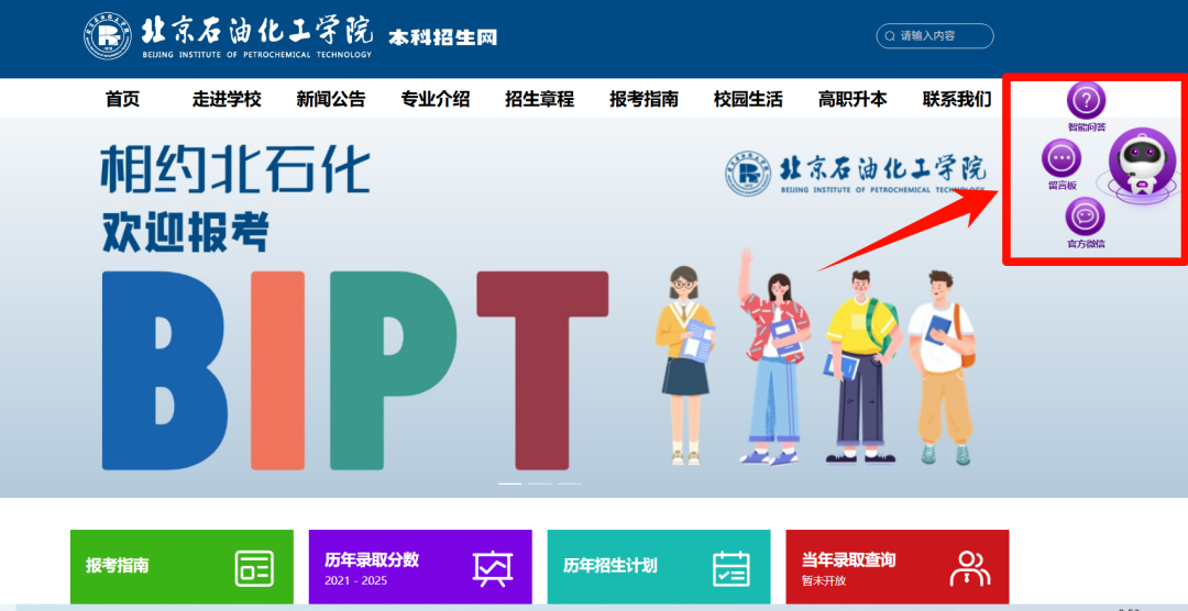 欢迎访问北京石油化工学院本科招生网https://zhaosheng.bipt.edu.cn/