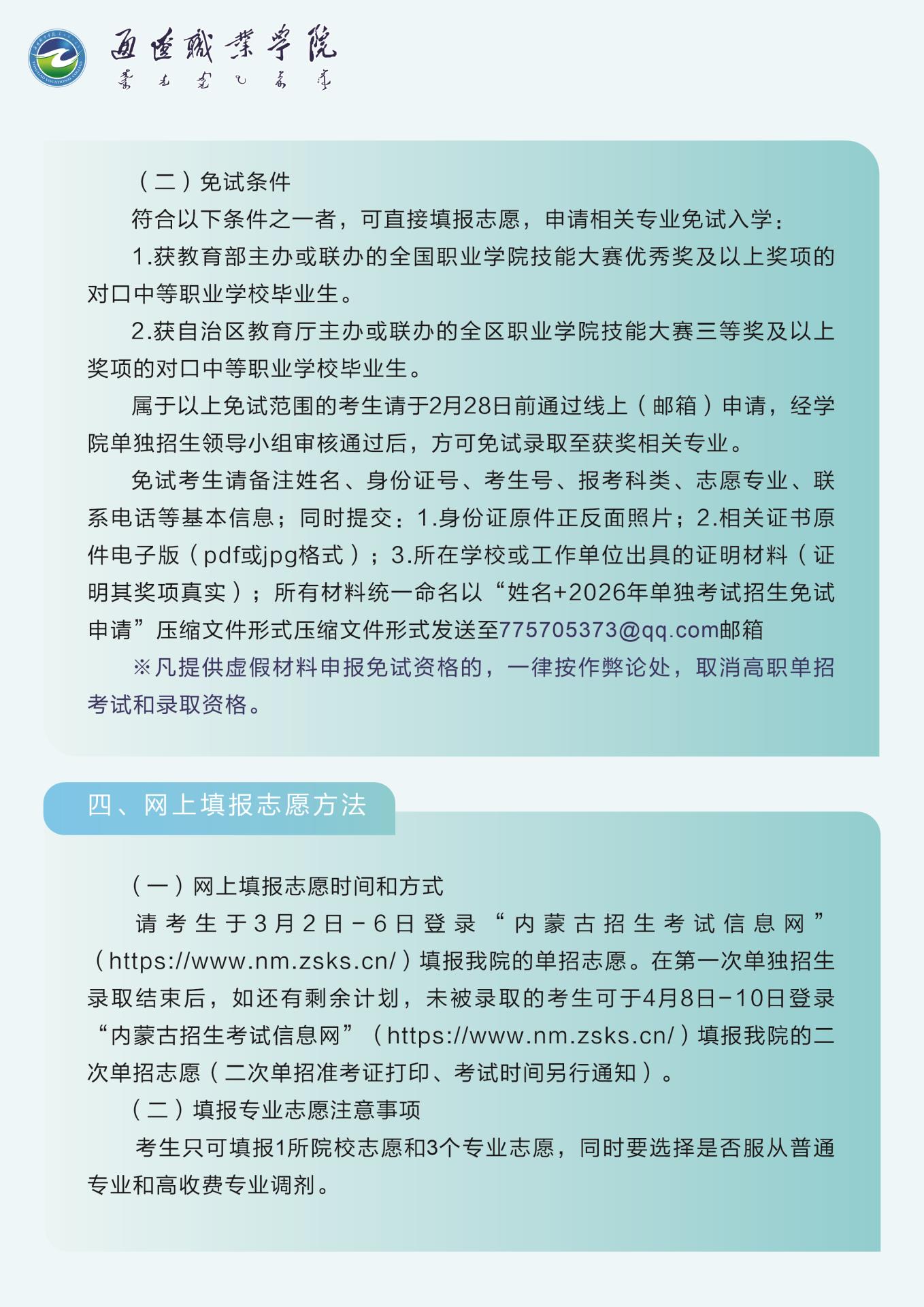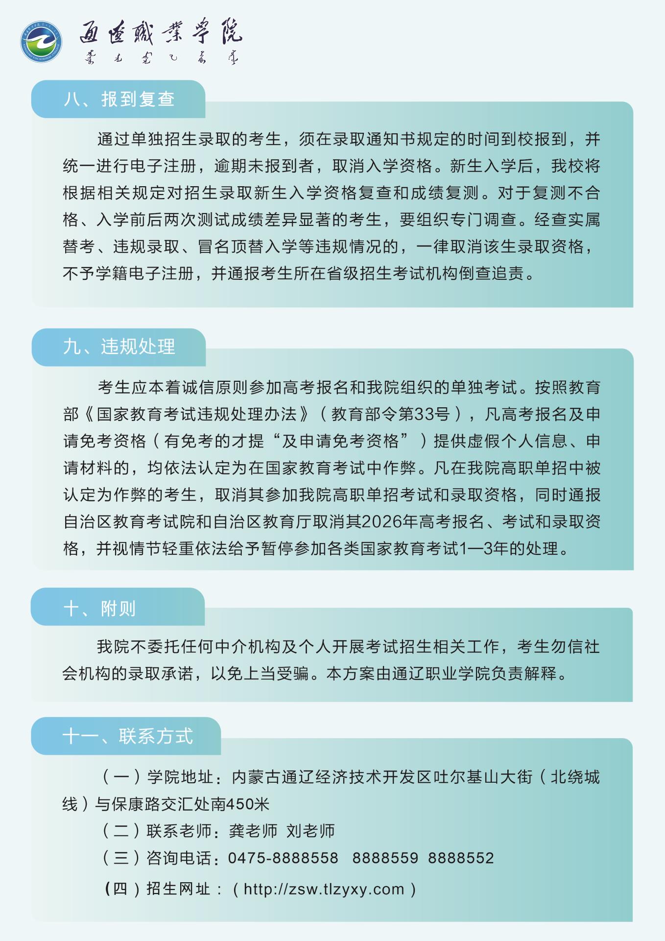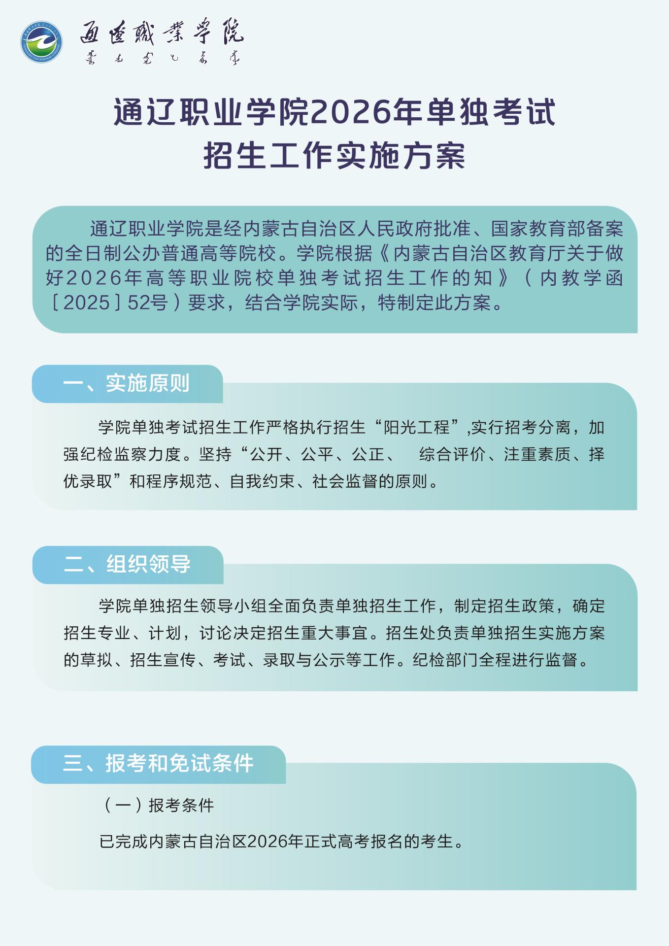 2026年通辽职业学院单独招生考试公告