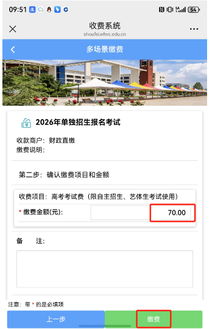 网上缴费时间:2026年3月1日09:00至3月2日16:00