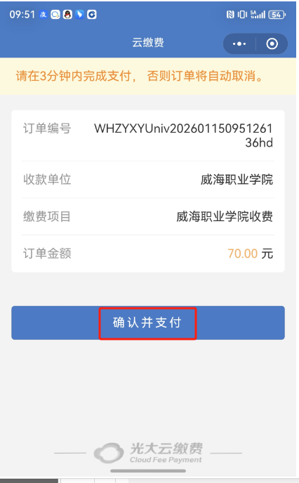 五、按界面弹出提示,三分钟内完成付款。