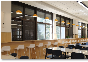 学生生活区由梅、兰、竹、菊四栋书院组成,宿舍里环境舒适,设施齐全。所有房间均为5人间,配有空调、热水器、写字台、衣橱、独立卫生间和洗衣房。可享受24小时热水、无线WiFi带来的舒适与便捷。贴心的宿管阿姨24小时值班,让学生感受家的温馨。