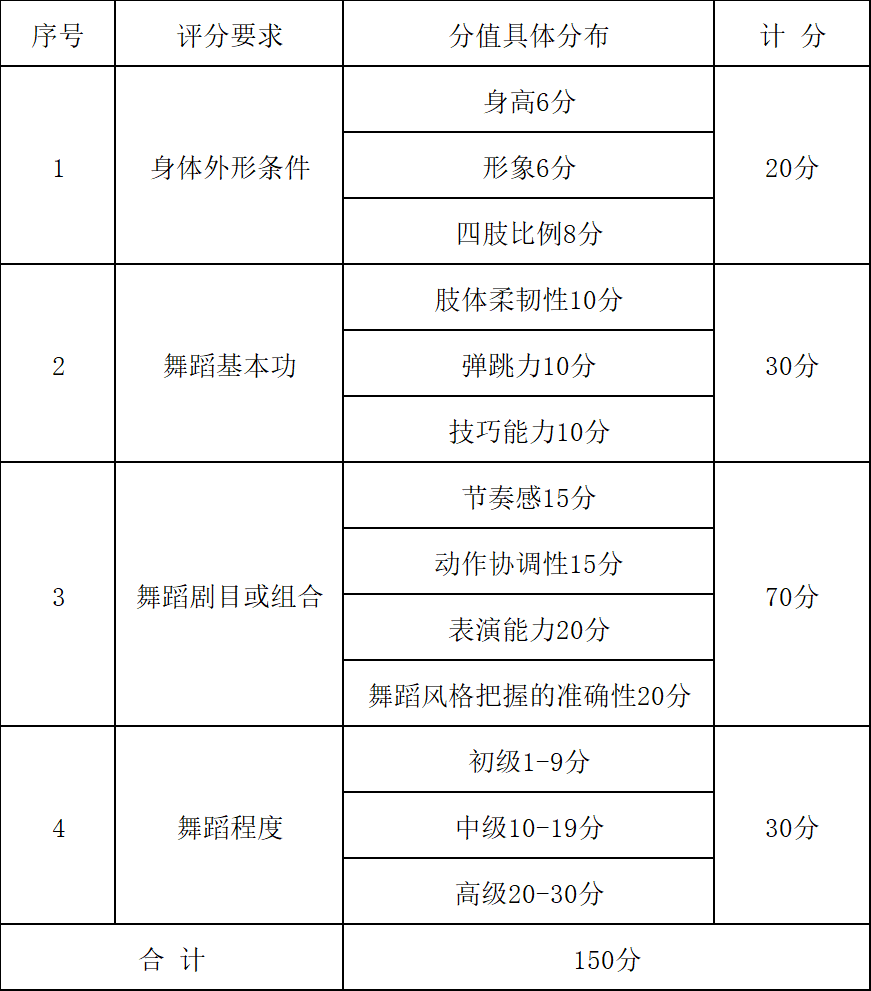 3.舞蹈考试评分标准 (舞蹈剧目/舞蹈组合任选一段,舞种不限)