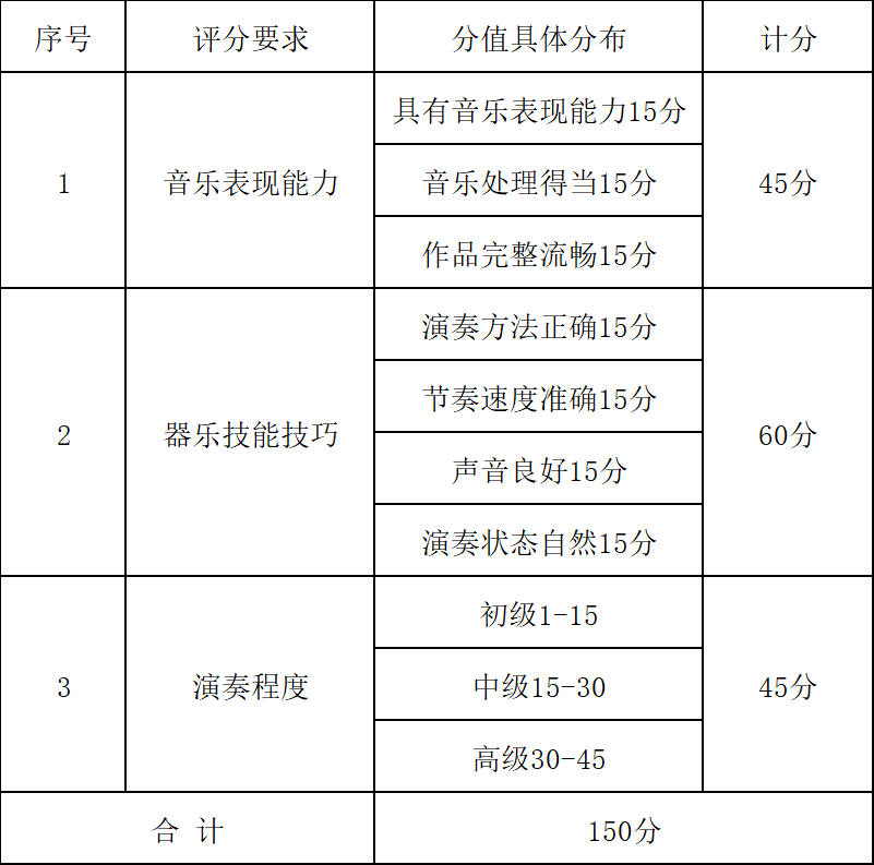 2.器乐考试评分标准 (练习曲/乐曲任选一首)