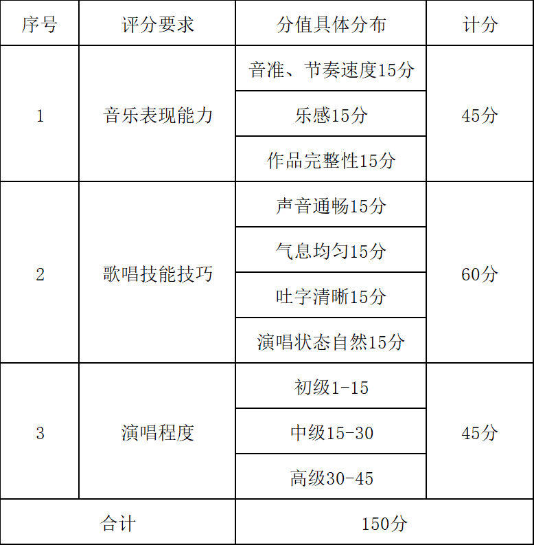 1.声乐考试评分标准(民歌、美声作品、通俗作品任选一首)