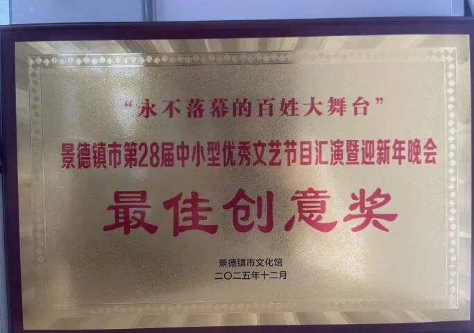 原创舞蹈《山路弯弯》荣获“永不落幕的百姓大舞台”景德镇市第二十八届中小型优秀文艺节目汇演“最佳创意奖”