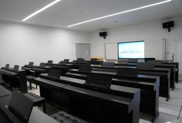 学院现有琴房113间,10间舞蹈与形体训练教室、多间数码钢琴教室、舞台实训室、专业录音棚、乐队合奏室、多功能音乐欣赏教室、MIDI音乐教室、多功能厅电子教室,500-800人演艺剧场3个。校外陶溪川国家级文创街区建成4000㎡专属音乐实训基地,配备顶级录音棚1间、录音棚标准音乐制作室7间、编曲工作室15间、舞蹈排练厅1间、50人以上声乐教室3间等专业场地,还同步共享陶溪川大剧院、黑匣子剧场等优质实训载体,硬件设施覆盖音乐创作、录制、排练、展演全流程,为专业实践提供高规格硬件支撑。