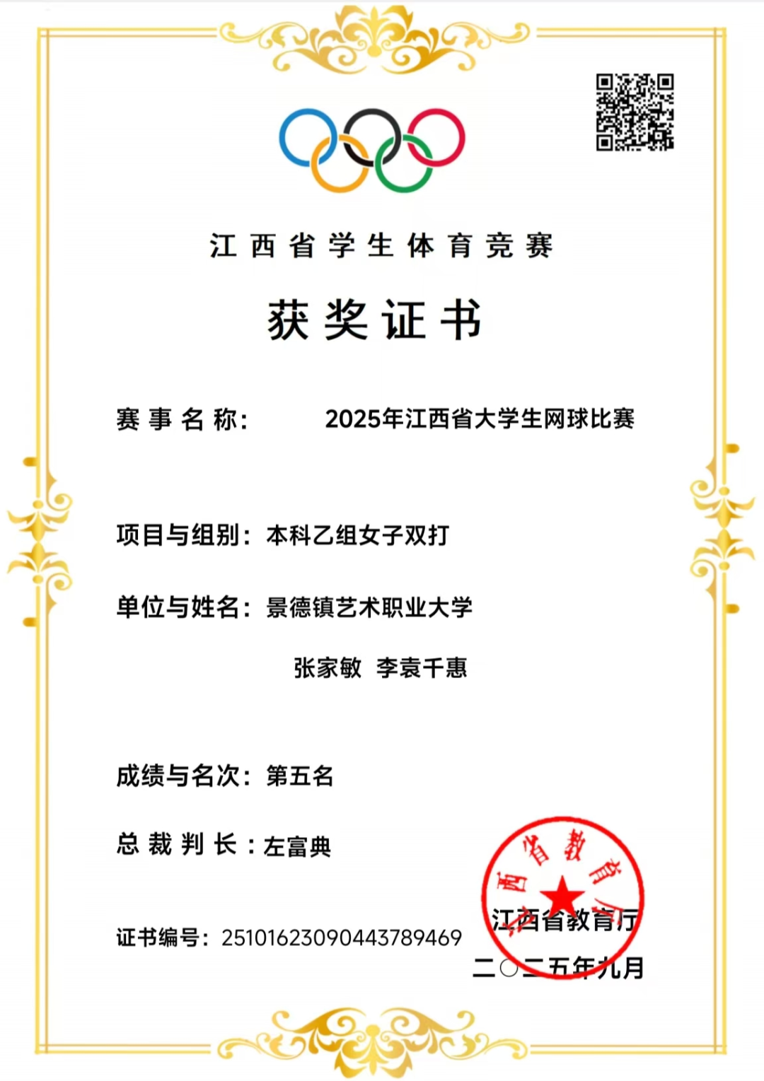 2025年江西省大学生网球比赛三等奖