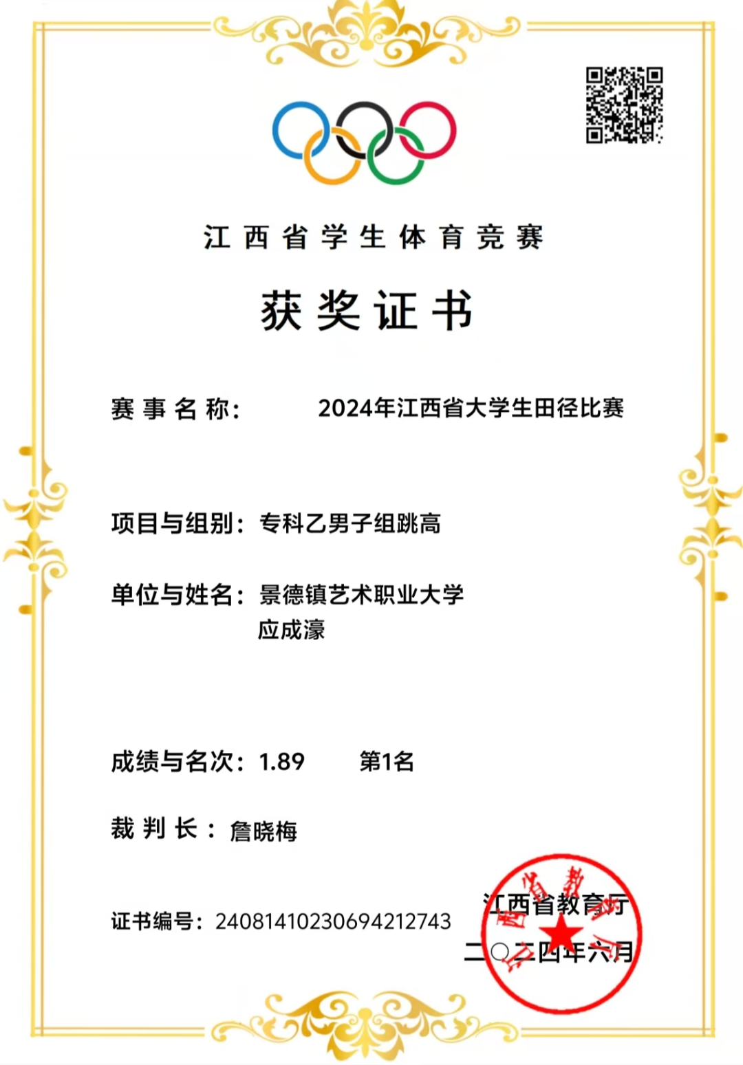 2024江西省大学生体育竞赛(田径比赛)一等奖