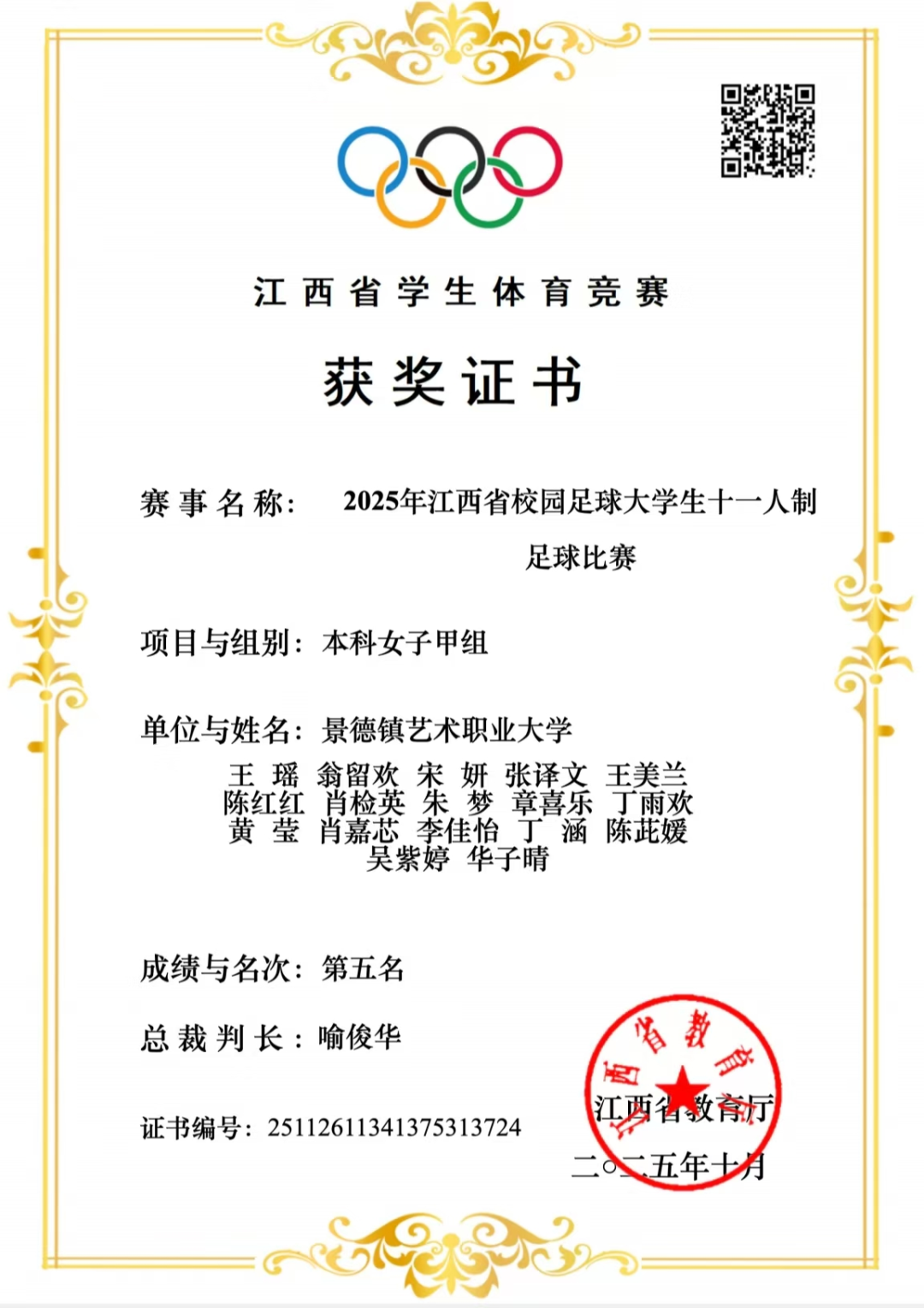 2025年江西省校园足球大学生十一人制足球比赛三等奖