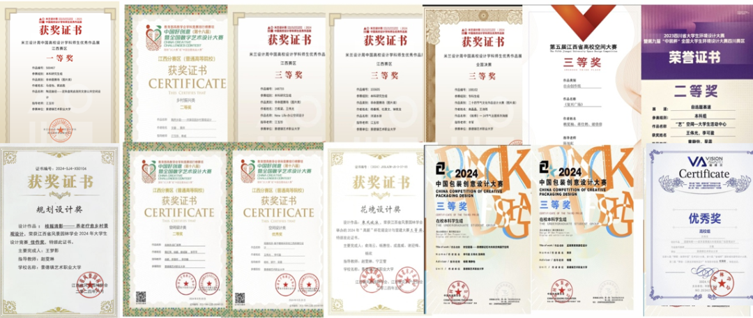 秉持 “以赛促学、以赛促练、以赛促创” 的人才培养理念,环艺专业教师积极组织学生参与国家级、省级、市级各类专业设计竞赛,学生获奖成果斐然,竞赛覆盖中国包装创意设计大赛、中国好创意暨全国数字艺术设计大赛、未来设计师・全国高校数字艺术设计大赛、米兰设计周高校师生作品展、两岸新锐设计竞赛・华灿奖、园冶杯大学生国际竞赛等多个高水平赛事,获奖级别涵盖国家级、省级、协会级,近四年累计获奖超百项。