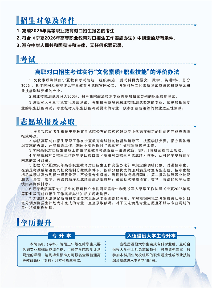 宁夏葡萄酒与防沙治沙职业技术学院2026年高职对口招生考试招生简章