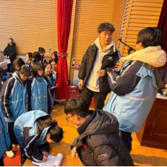活动前期,团队成员于宣讲之前与母校班主任李老师和年级组侯老师取得联系,商定于1月20日下午进行宣讲。为确保宣讲效果,团队成员精心打磨宣讲PPT,并准备了富有心意的“金榜题名”励志红包、学校特色明信片及招生宣传册。张耀栋同学主动承担后勤保障工作,细致完成物料清点与设备调试,为活动顺利开展奠定了坚实基础。