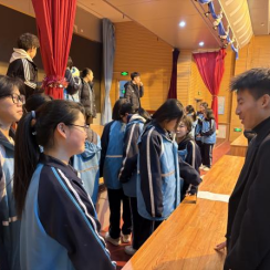 活动当日,团队成员在母校学科组的背景墙前留影,过往奋斗的时光仿佛重现。团队成员首先拜望了生物薛老师与物理李老师,了解当前学弟学妹们的学习状态与困惑。此番交流使得后续宣讲内容更具针对性,目标更加明确。
