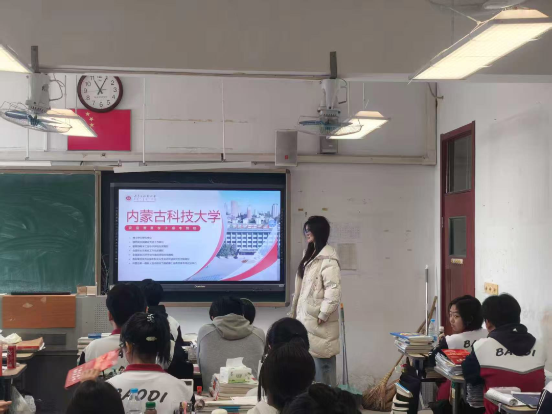 再回熟悉的母校,身份却从聆听者变为讲述者,这种感觉非常奇妙。活动前,我投入大量时间准备宣讲内容,不仅梳理了官方的招生资料,更融入了我最真切的感受——比如清晨图书馆的宁静、预科阶段的学习生活、还有精彩纷呈的社团活动,我想呈现一个立体的、有温度的内蒙古科技大学。