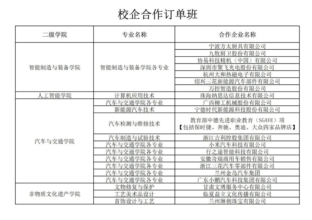 经甘肃省教育厅审批,与我校合作的甘肃省内部分中等职业学校(含技工学校)学生。