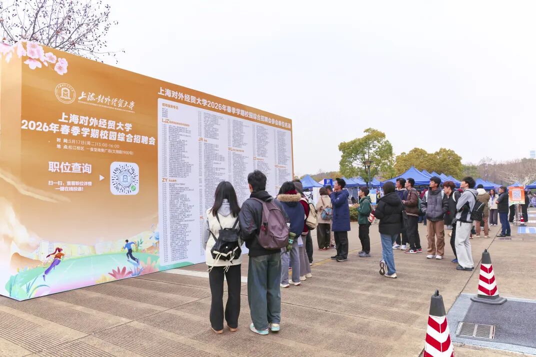 为深入贯彻落实党中央、国务院及教育部关于高校毕业生就业工作的总体部署,牢牢把握春季求职关键期,充分发挥校园招聘主阵地、主渠道作用,全力拓宽毕业生就业渠道,3月17日下午,上海对外经贸大学2026年春季学期首场校园综合招聘会在松江校区成功举办。作为近年来规模最大的校园综合招聘会,本次招聘会精准聚焦学校学科专业特色与毕业生求职需求,汇聚了金融、经贸、专业服务、数字科技、文化传媒、教育等多个领域的近400家优质企业,提供优质岗位逾万个,搭建了高效便捷的供需对接平台。