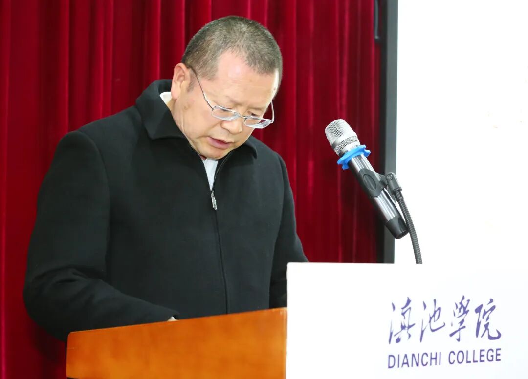 大关县人民政府县委常委、副县长李志新致辞,他代表大关县人民政府对滇池学院师生的到来表示热烈欢迎,希望高校与地方政府共同推动当地体育美育课程提质增效,不断促进教育均衡优质发展。他表示,第三期支教师生交接仪式,既是对前期工作的肯定,更是对未来合作的期盼。这标志着校地情谊再续新篇,也意味着新的教育旅程正式启航。李志新副县长对支教师生提出三点希望:一是深耕讲台,发挥专业优势;将先进教育理念与乡村教学实际深度融合,既教好每一堂课,更做好“传帮带”,带动本地教师共同成长;二是勇当乡村孩子的“引路人”。用体育点燃青春活力,用美育滋养纯净心灵,让每一个孩子都能在体美浸润中绽放独特光彩;三是发扬吃苦耐劳精神。与县教育局、各受援学校密切协作,确保支教工作平稳有序推进。