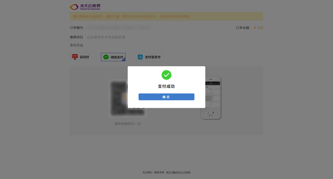 缴费时不要关闭操作页面,一直要等到报名网站提示缴费成功后再关闭窗口。