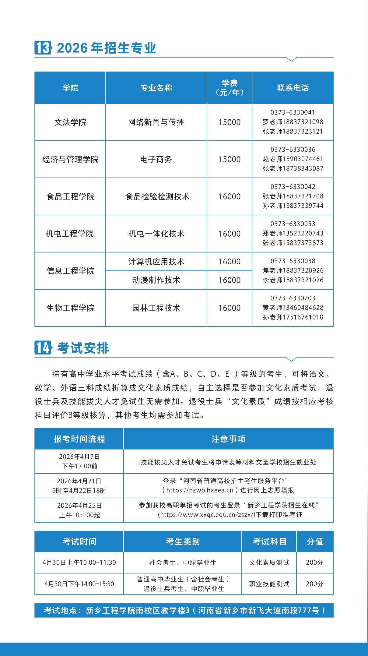 新乡工程学院2026年高职单招招生简章