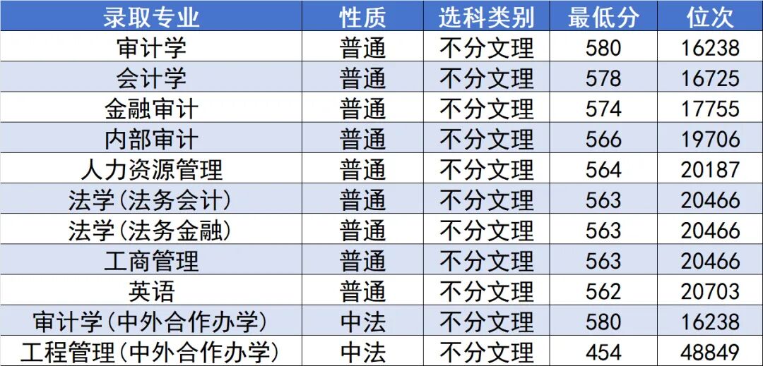 学校设有国家审计学院、会计学院等20个学院(教学部),国家审计研究院、审计科学与技术研究院、经济与金融研究院等6个特色研究院;设立润园、泽园、澄园、沁园书院,实行书院和学院“双院制”育人模式。学校现设有本科专业45个,其中国家级一流本科专业建设点18个、省级一流本科专业建设点11个;教育部特色专业建设点3个,教育部“专业综合改革试点项目”2项;江苏省“十二五”重点专业(类)5个、江苏高校品牌专业15个、江苏省特色专业15个;省级产教融合型品牌专业建设点5个。获批国家级课程思政示范课程1门、国家级一流本科课程23门、国家级规划教材6部。建有国家级虚拟教研室1个、中国审计会计案例中心1个。拥有国家级教学团队1个、国家级课程思政教学团队1个、国家级课程思政教学名师8名;江苏省高校“青蓝工程”优秀教学团队6个。建校以来,累计培养近10万名全日制毕业生,近半数从事审计及经济监督工作。根据江苏省高校招生就业指导服务中心发布的历年《江苏省本科毕业就业情况调查报告》和《江苏省用人单位招聘情况调查报告》显示,学校毕业生就业质量指数名列前茅;毕业生对母校的总体满意度和用人单位对毕业生的满意度逐年攀升,稳定在90%以上。