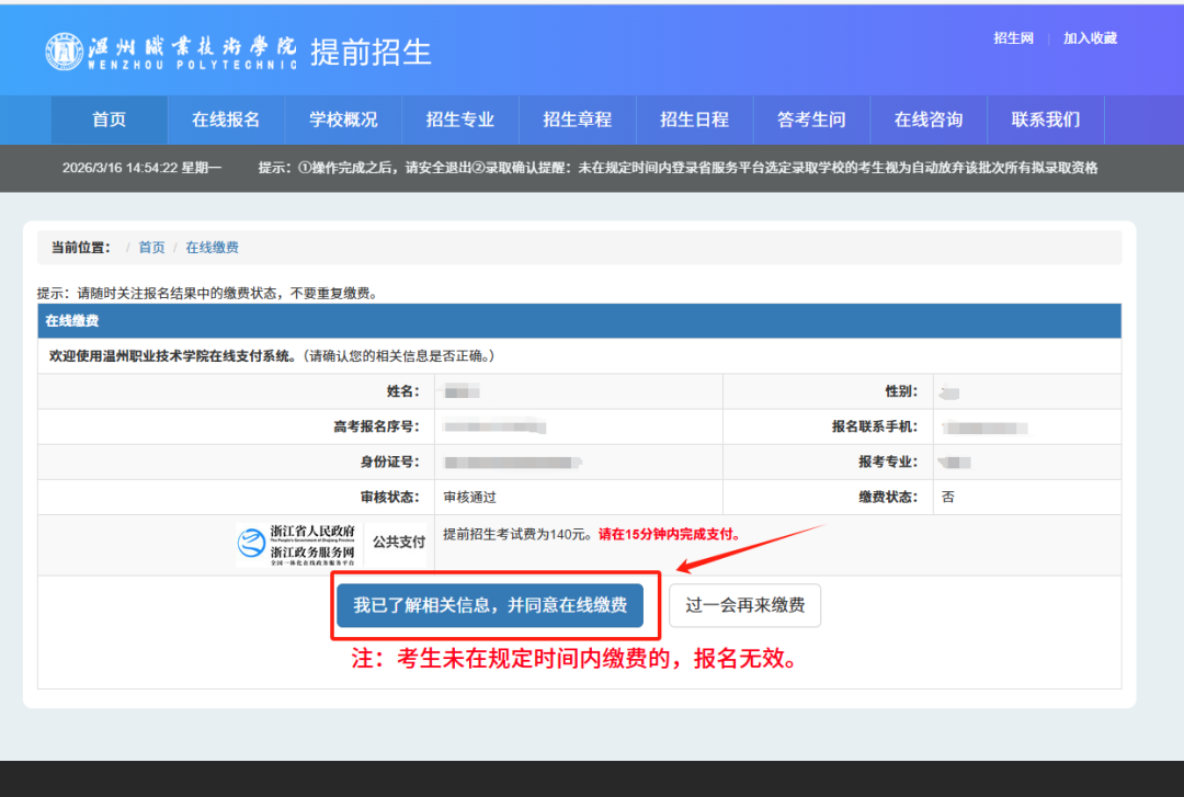 入围考生须于2026年3月24日—3月31日完成报名考试费缴纳。考生未在规定时间内缴费的,报名无效。
