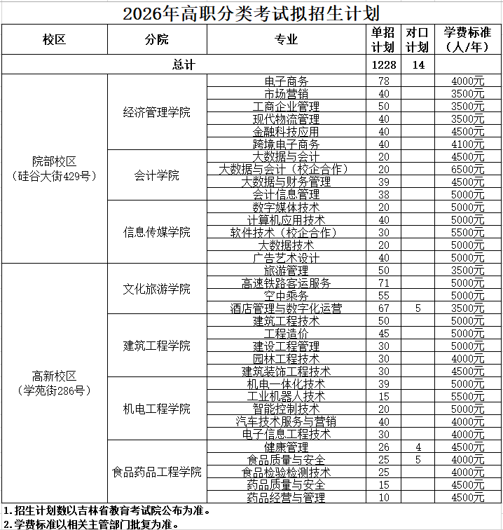 2026年高职分类考试招生计划