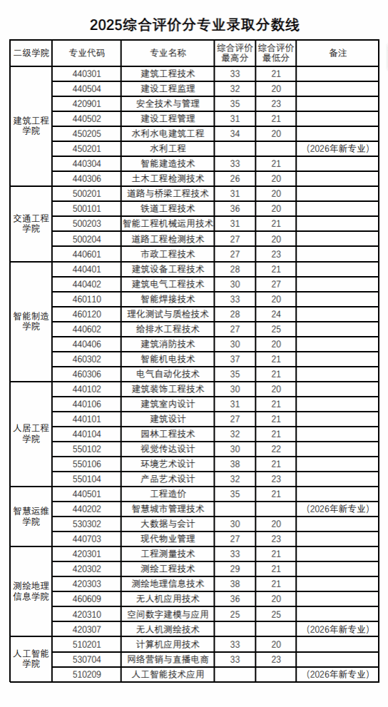 甘肃建筑职业技术学院2025年综合评价分专业录取分数线