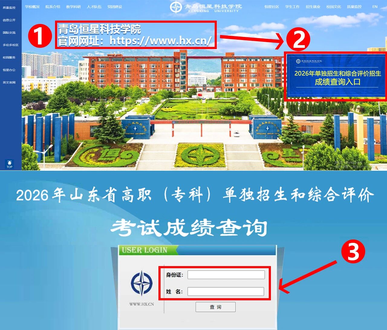 登录青岛恒星科技学院官网(https://www.hx.cn/)--点击飘窗--输入“姓名”和“身份证号”--查询