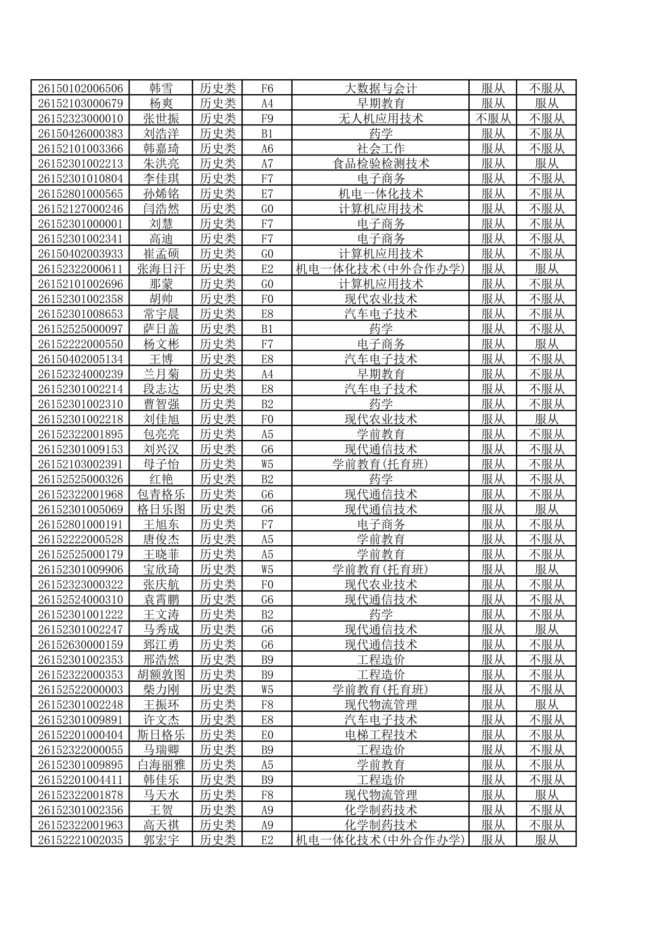 2026年通辽职业学院单独考试招生历史B类拟录取名单公示