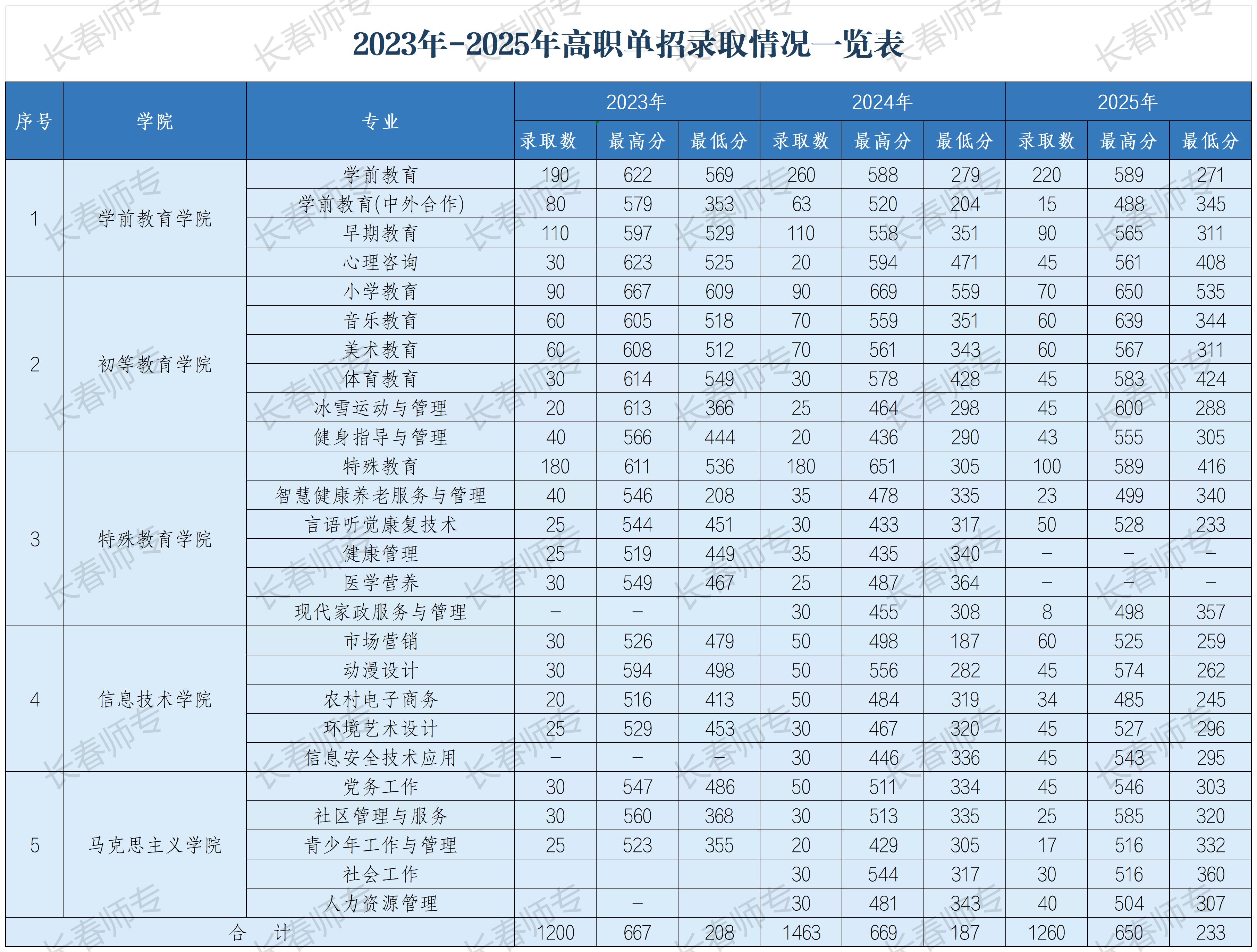 2023年-2025年高职单招录取分数线