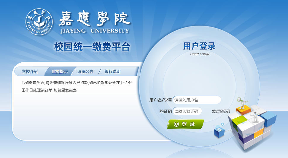 打开嘉应学院支付平台(https://pay.jyu.edu.cn),用户名为身份证号码,输入考生在“广东省2026年普通高校专升本报名系统”绑定手机号收到的验证码,选择“登录”。
