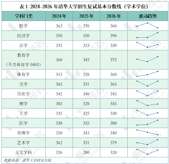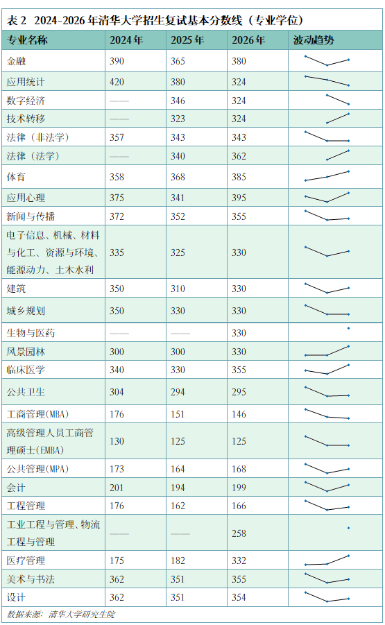 复试线分数较去年上升最多的为应用心理专业,上升54分。医疗管理专业今年新增专业课一及专业课二考试,考试结构调整或对分数线产生影响;分数下降最多的为应用统计专业,下降56分。2025年各专业复试分数线曾出现普遍下滑,2026年大多门类分数未回升至2024年水平。
