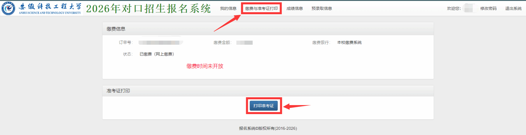 根据学校2026年对口考试招生职业技能考试安排,请于3月26日15:00后,按照以下操作流程打印考生准考证和专业技能测试考生须知,下载后请仔细查阅,并按照相关要求,参加考试。如有疑问,请咨询安徽科技工程大学招生办公室 0550-6732041,0552-3197041。